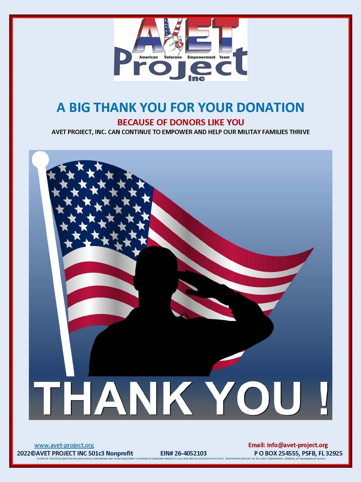 AVET Project can NOT do this alone so Thank You. Together we can help do more. Without our heroes there would be NO FREEDOM
